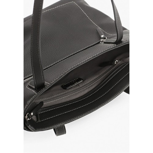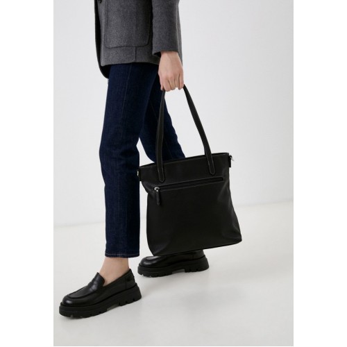 Сумка выполнена из искусственной кожи. Модель с текстильной подкладкой. Детали: 2 ручки для переноски, снаружи 2 кармана с молниями, 1 просторное отделение на молнии, внутри 2 кармана без застежек и 1 карман с молнией.